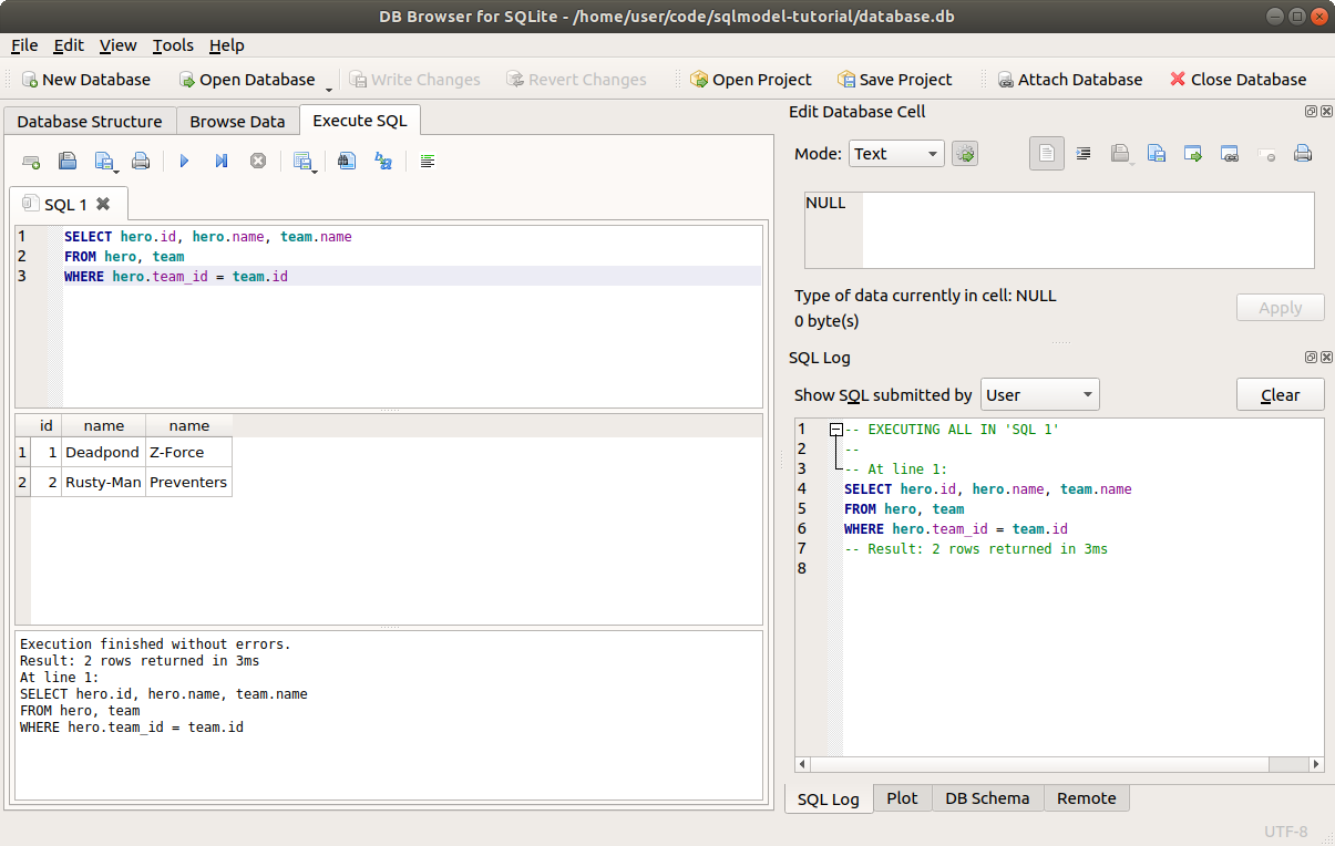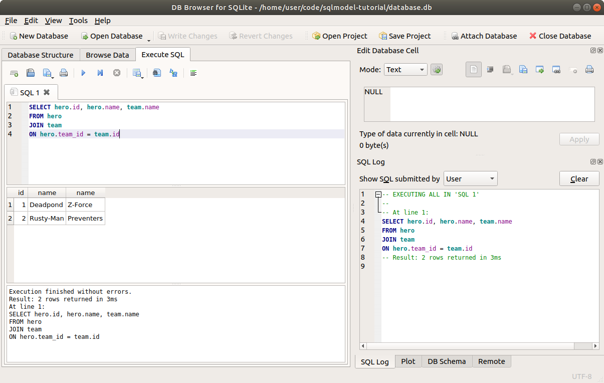 statement = select(Hero, Team).where(Hero.team_id == Team.id)